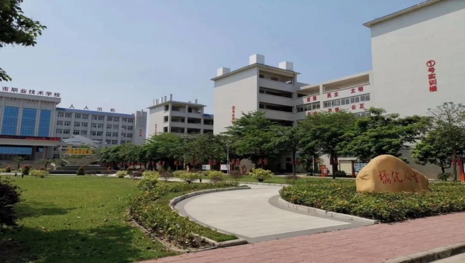 化州市职业技术学校(招生代码:8800504)创办于1989年,是化州市教育局直属的一所全日制公办中等职业学校,是广东省重点职业技术学校。学校坚持“立德树人”的教育宗旨,秉持“化橘为红,人人出彩”的办学理念,培养职业素养与专业技能并重的现代职业人才,开设电子商务、中餐烹饪、社会文化艺术(音乐舞蹈)、汽车运用与维修、机电技术应用、电子技术应用、计算机平面设计、会计事务等十二大专业,现有在校学生4600余人。学校现有占地总面积超11万平米,总建筑面积约62000平米,拥有风格独特功能齐全的教学楼、综合楼、宿舍楼、16000多平米的实训中心,以及3000多万的实训设备,并配置先进完备的现代多媒体电教系统和校园网络系统。学校有一支实力雄厚、奋发向上、仁爱至上的教师队伍,专任教师总人数231人,“双师型”教师77人,其中包括广东省特级教师、广东省“南粤优秀教师”、省市优秀班主任,以及各行各业的专家。学校积极推进“产教融合、校企合作”,创新工学交替、订单培养等办学模式,与海信集团、美的集团、(OPPO、VIVO)华茂集团、希尔顿酒店管理集团、中兴通信、奔图电子广通车辆制造等众多优质企业合作,为学生优质就业提供保障。升学模式多途径,除了中高职贯通三二分段外,还专门设立高考班。2022年高考,学校的高考班523人考试,上线516人,其中本科73人,上线率98.47%。学生就业平台广阔升学渠道畅通。新校区位于下郭街道梅石西路,毗邻机场大道,总体规划378亩,交通便捷设施完善,校园环境优美、文化气息浓厚。自2012年搬迁新校区以来,历经十年的发展,学校已成为化州地区校园环境最优美、实训设施设备最齐全,师资力量最雄厚的中等职业技术学校,是广大学子学习知识、掌握技能、走向社会、实现辉煌人生的摇篮。